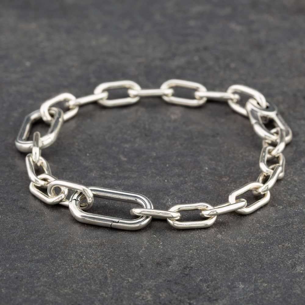 The 2 Links Chain Bracelet features as part of the Pandora Me collection and is made from the brands from sterling silver. It has a large lobster clasp and also 2 openable Styling Links for attaching your Word Links or other Styling Links from the series. Each openable Styling Link can hold up to 8 mini dangle charms or 2 medallions from the Pandora Me collection.