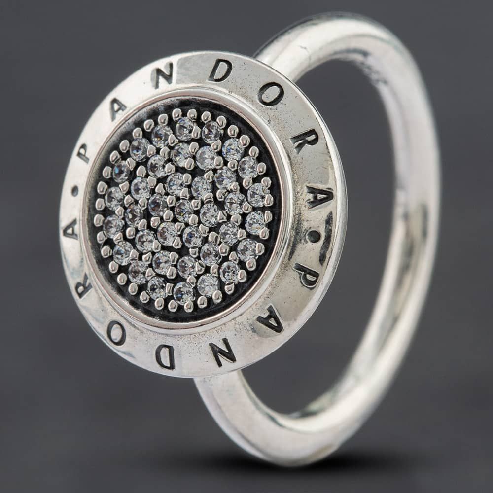 Pandora presents a unique silver ring engraved with Pandora around the edge and completed with an eye catching cluster of cubic zirconia in the centre.