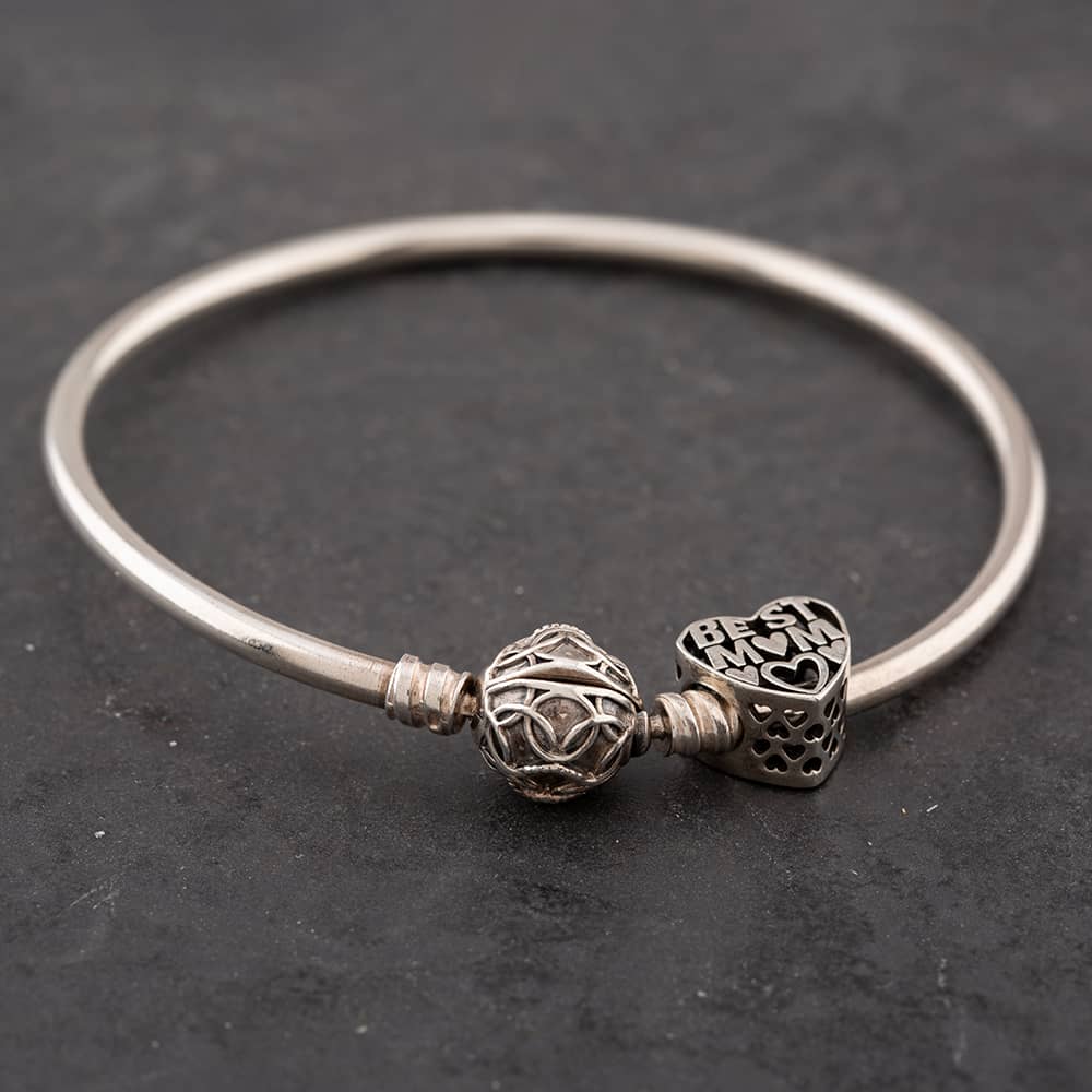 Second Hand Pandora Silver Best Mom Heart Bead & 21cm Plain Bangle 41221191