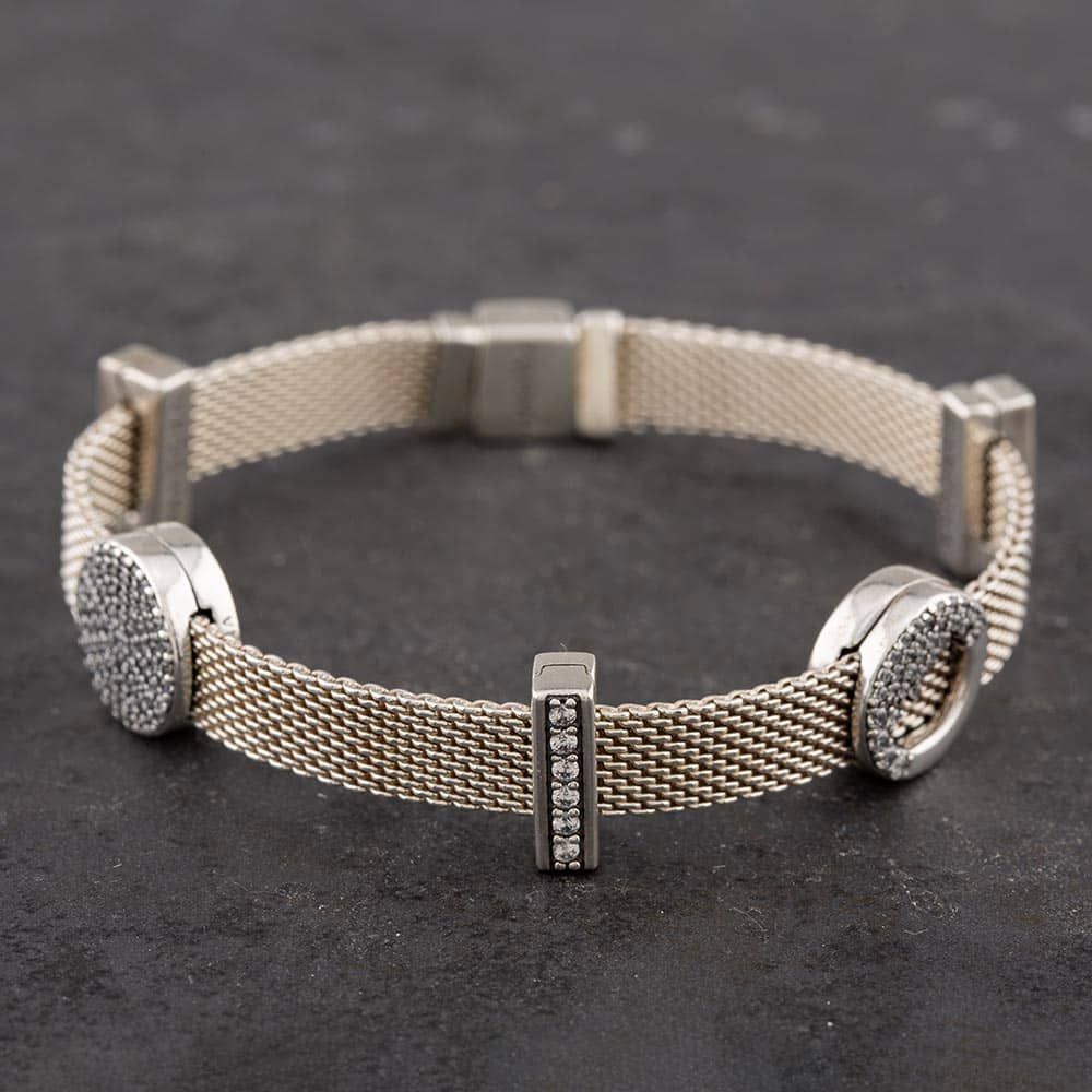 Silver Cubic Zirconia Mesh 6.5 Inch Charm Bracelet