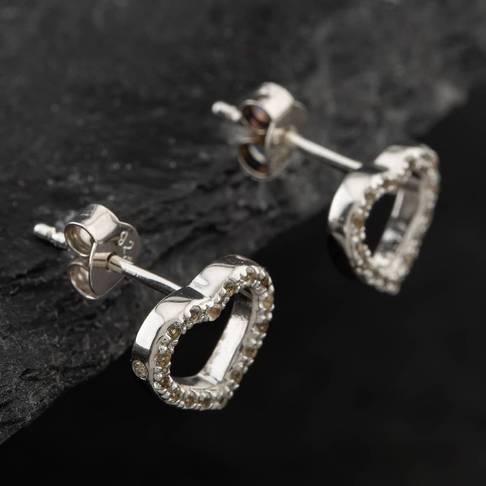 Silver Cubic Zirconia Open Heart Stud Earrings