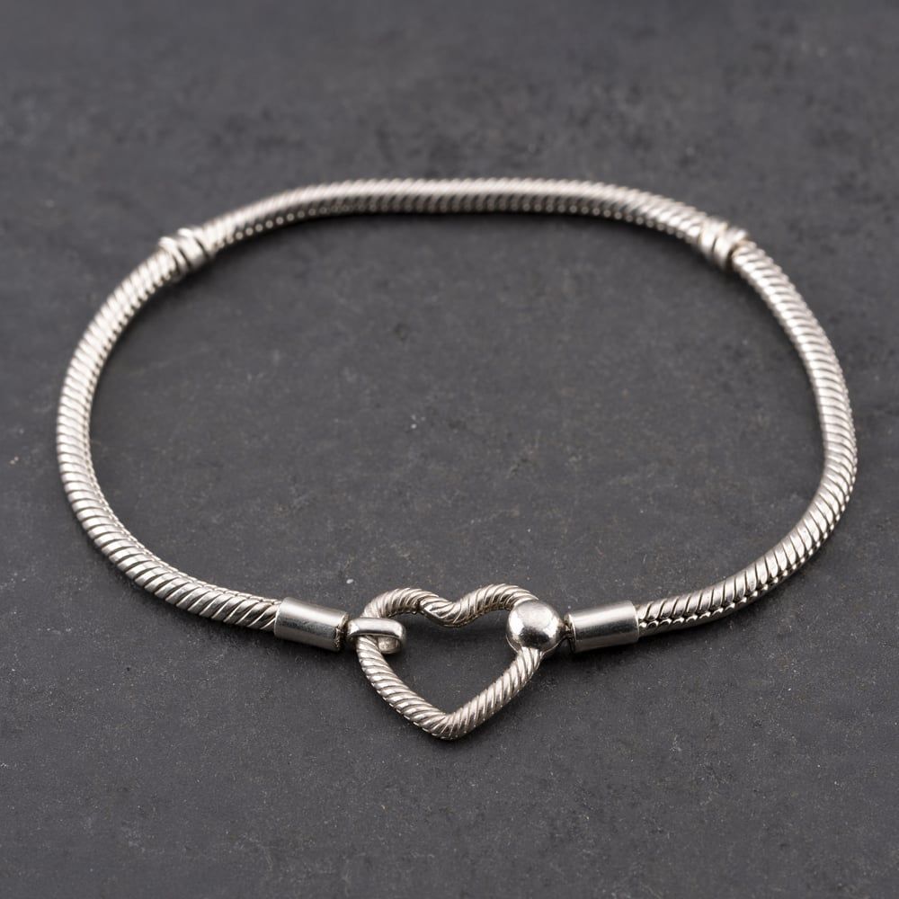 Silver Moments Heart Clasp 8 Inch Snake Charm Bracelet
