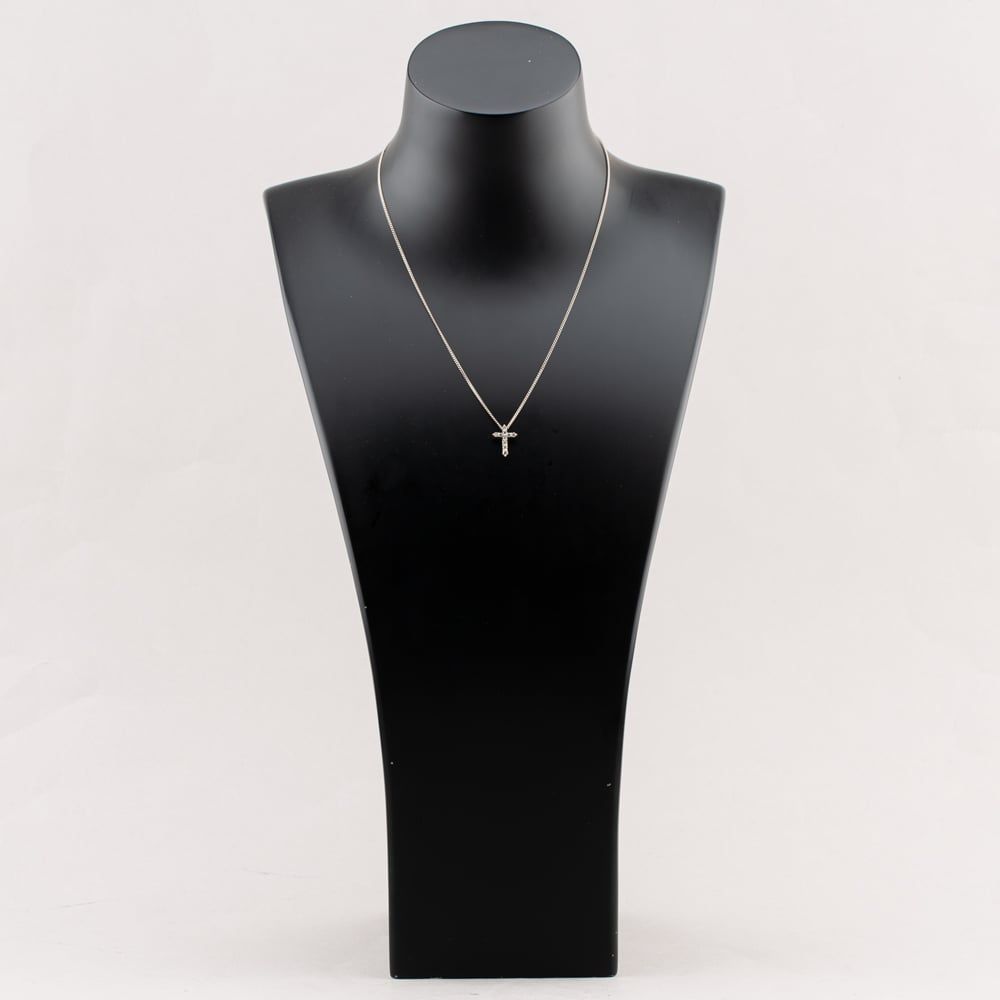 Platinum 0.30ct Brilliant Cut Diamond Set Cross Pendant & 16 Inch Curb Chain