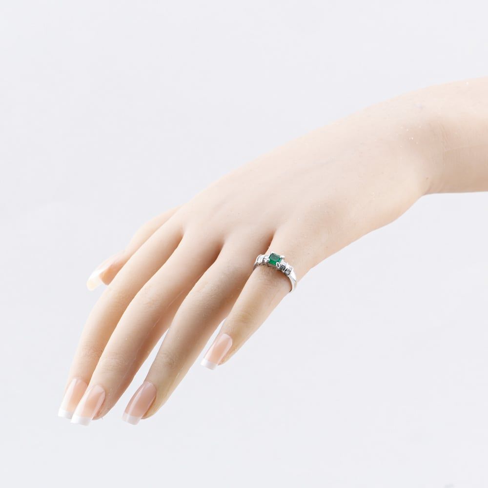 Platinum 0.38ct Emerald & 0.23ct Baguette Cut Diamond Dress Ring