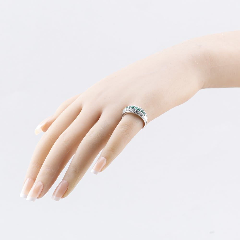 Platinum 0.43ct Emerald & 0.62ct Brilliant Cut Diamond Graduated three Row Ring