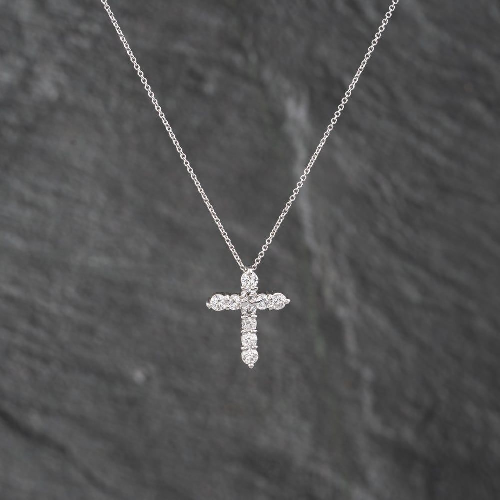 Platinum 0.50ct Brilliant Cut Diamond Set Cross Pendant & 16 Inch Trace Chain