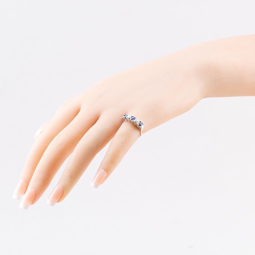 Platinum 0.55ct Sapphire & 0.30ct Brilliant Cut Diamond Five Stone Ring