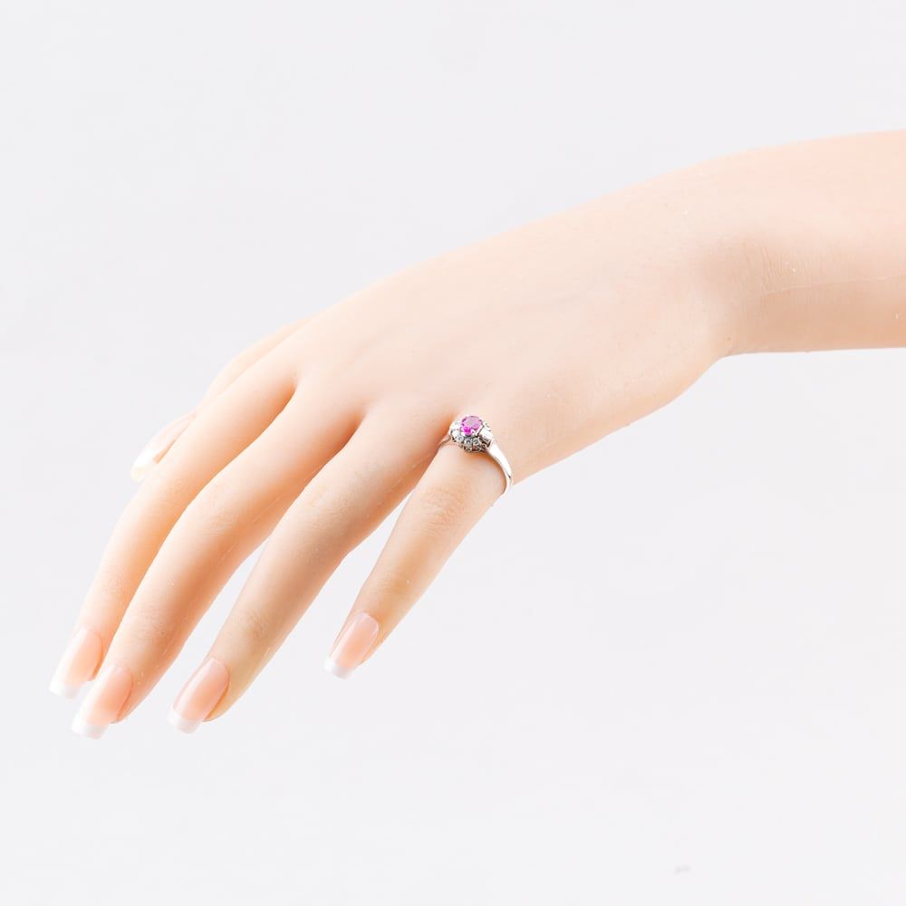 Platinum 0.63ct Ruby & 0.29ct Diamond Oval Cluster Ring