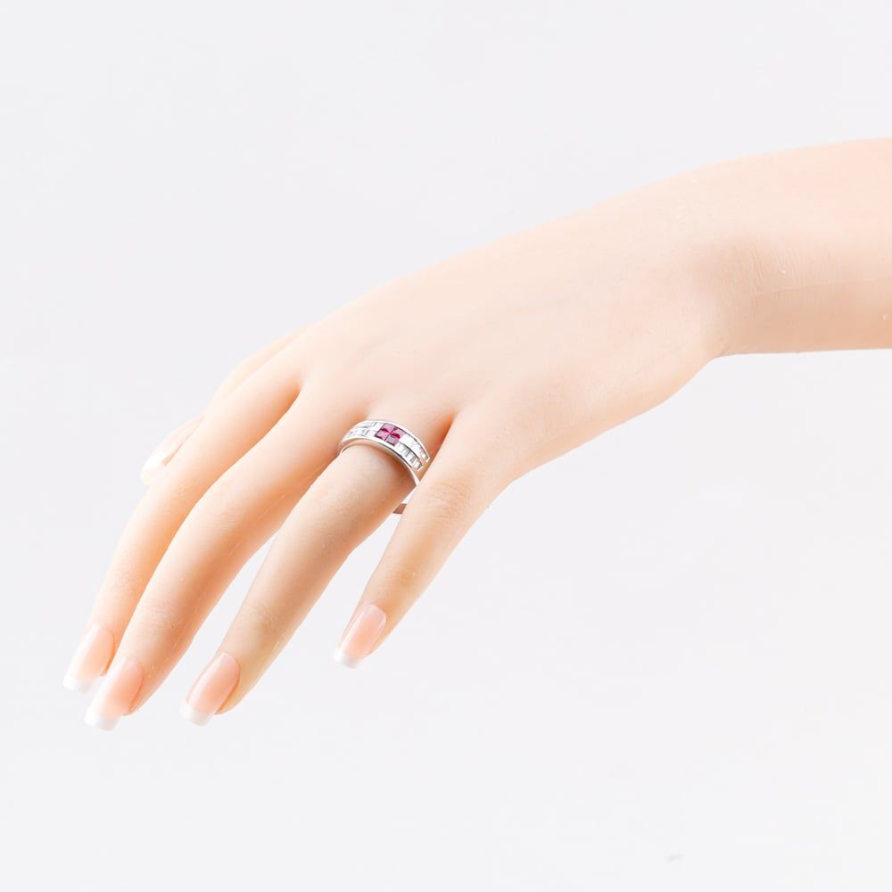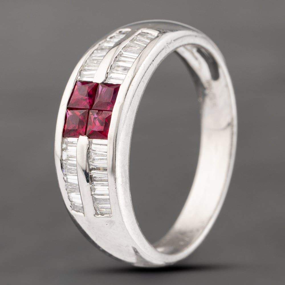 Platinum 0.71ct Ruby & 0.71ct Baguette Cut Diamond Two Row Ring
