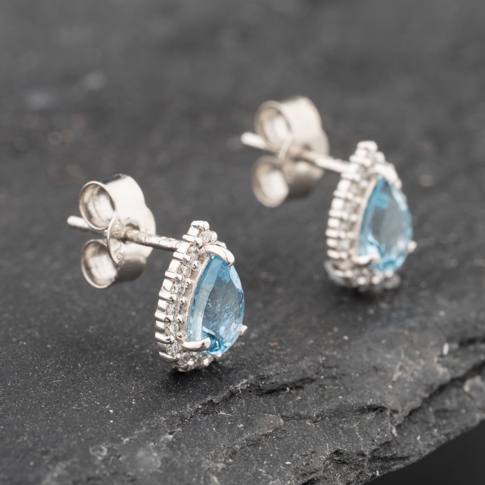 Second Hand Platinum 0.72ct Diamond & 0.12ct Aquamarine Teardrop Cluster 10mm Stud Earrings 43171193 Second Hand Platinum 0.72ct Diamond & 0.12ct Aquamarine Teardrop Cluster 10mm Stud Earrings 43171193