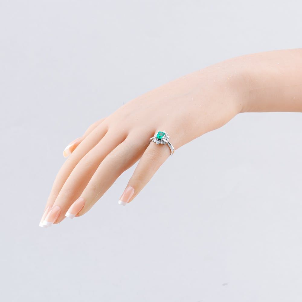 Platinum 0.73ct Emerald & 0.50ct Diamond Cluster Ring