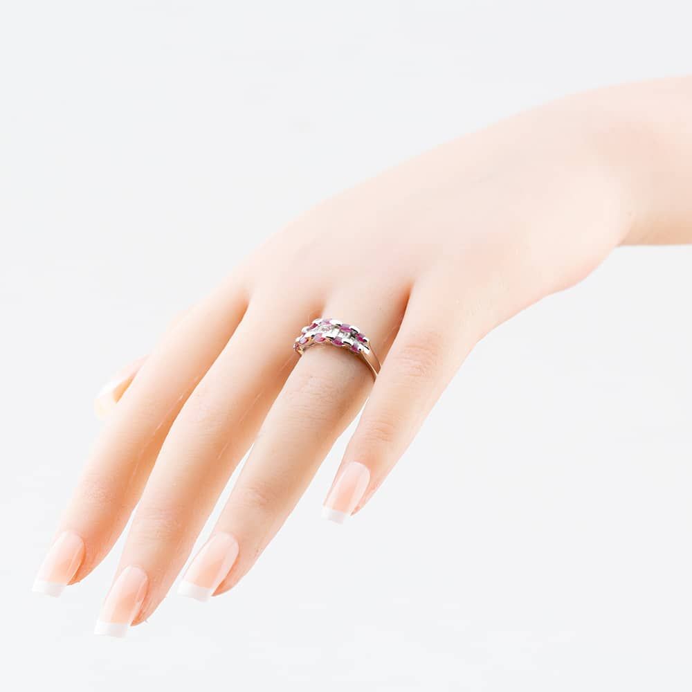 Platinum 0.73ct Oval Cut Ruby & 0.63ct Baguette Cut Diamond three Row Dress Ring