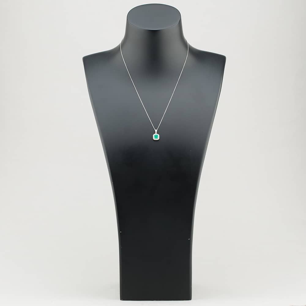 Platinum 0.81ct Cushion Cut Emerald & 0.29ct Brilliant Cut Diamond Pendant & 16-18 Inch Box Chain