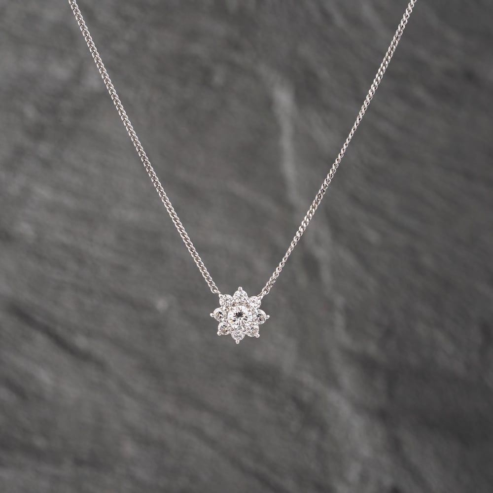 Platinum 0.86ct Brilliant Cut Diamond Flower Cluster Pendant & 16 Inch Curb Chain