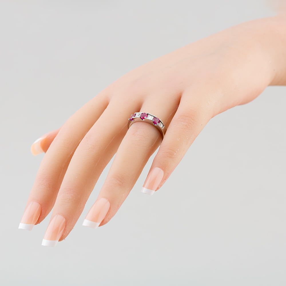 Platinum 0.94ct Ruby & 0.18ct Baguette Cut Diamond Half Eternity Ring