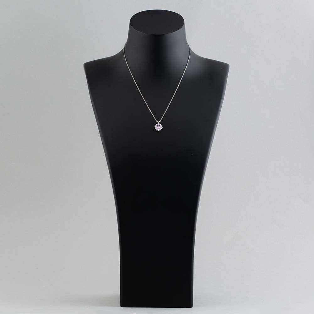 Platinum 0.95ct Oval Cut Pink Topaz & 0.43ct Brilliant Cut Diamond Cluster Pendant & 16 Inch Trace Chain