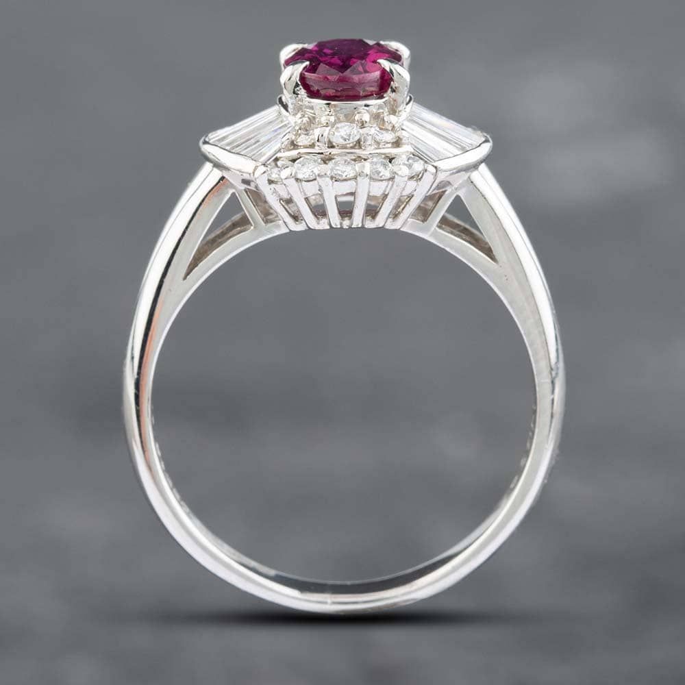 Platinum 0.96ct Oval Cut Ruby & 0.46ct Diamond Cluster Ring