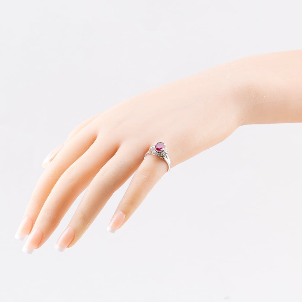 Platinum 0.98ct Ruby & 0.30ct Diamond Oval Cluster Ring