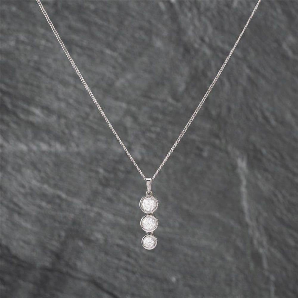 Platinum 1.00ct Brilliant Cut Diamond Graduated Pendant & 16 Inch Curb Chain