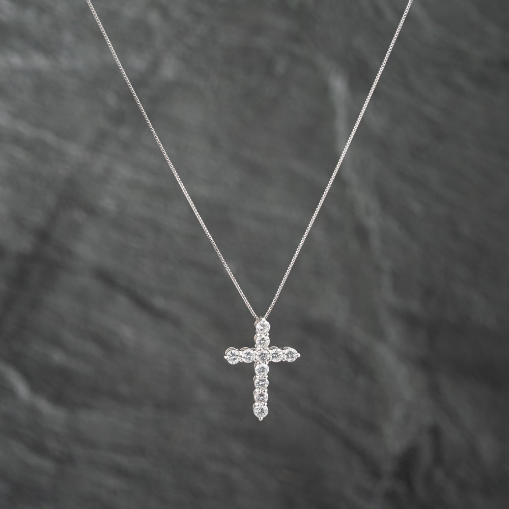 Platinum 1.00ct Brilliant Cut Diamond Set Cross Pendant & 16-18 Inch Box Chain
