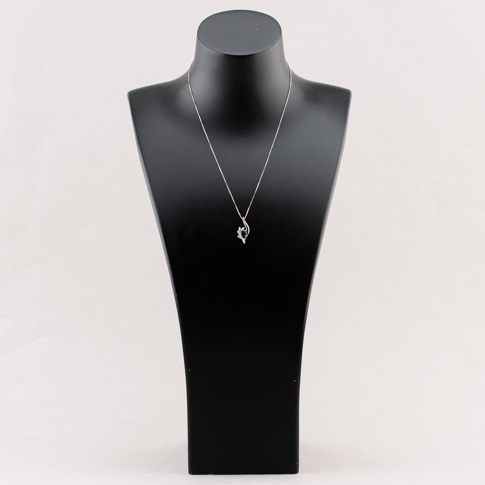 Platinum 1.02ct Sapphire & 0.24ct Marquise Cut Diamond Fancy Pendant & 16-18 Inch Box Chain
