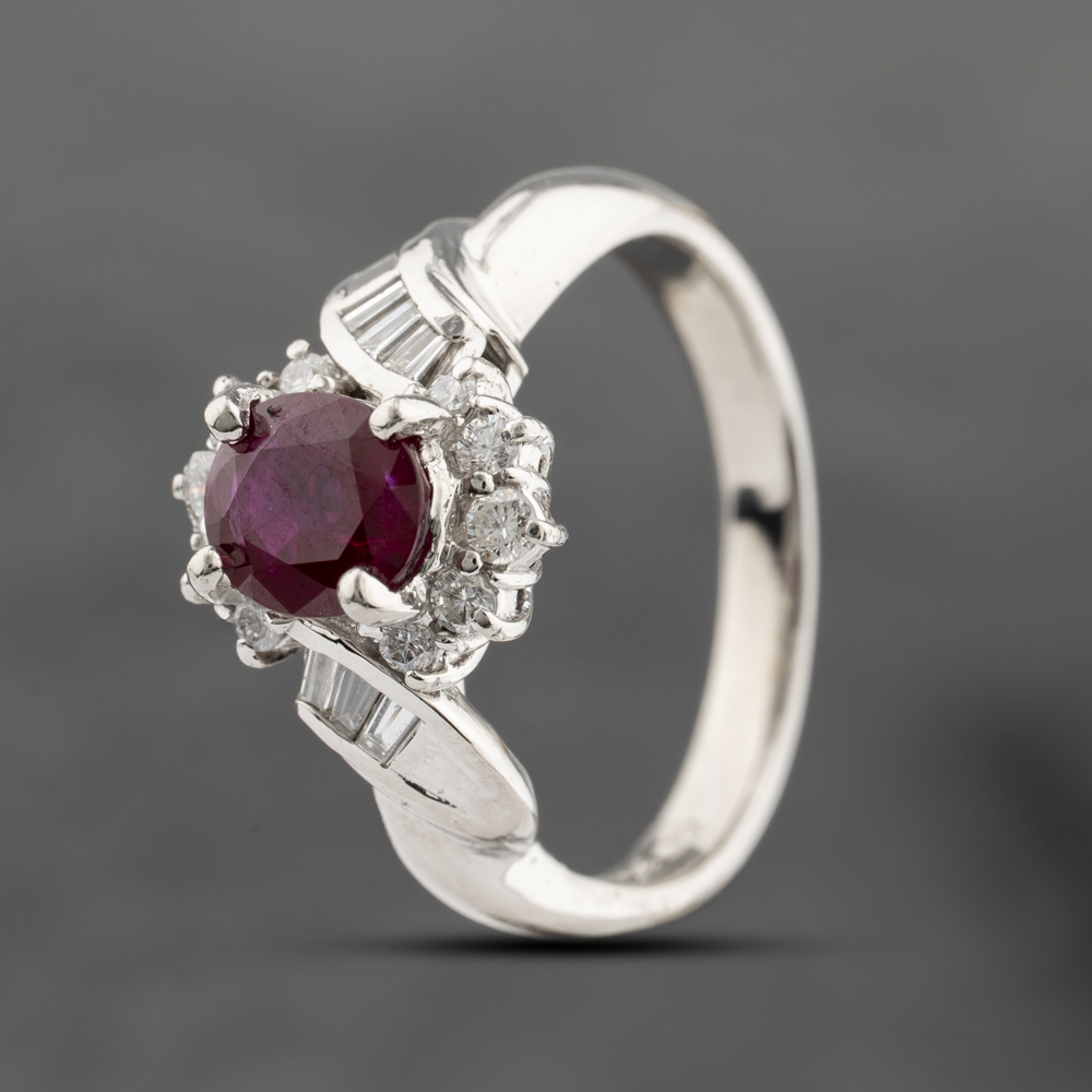Platinum 1.04ct Ruby & 0.27ct Diamond Oval Cluster Ring