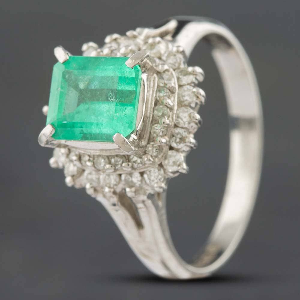Platinum 1.05ct Emerald & 0.35ct Brilliant Cut Diamond Cluster Ring