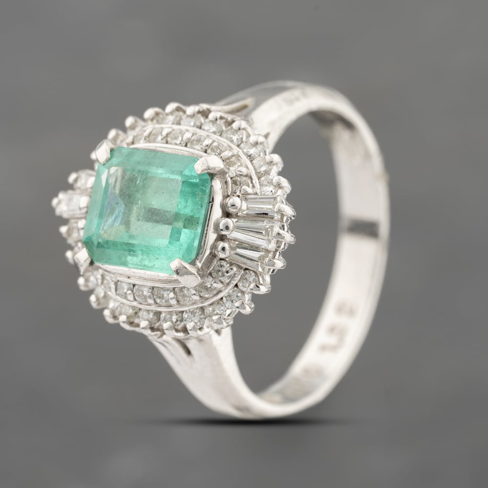 Platinum 1.32ct Emerald & 0.50ct Diamond Rectangular Cluster Ring