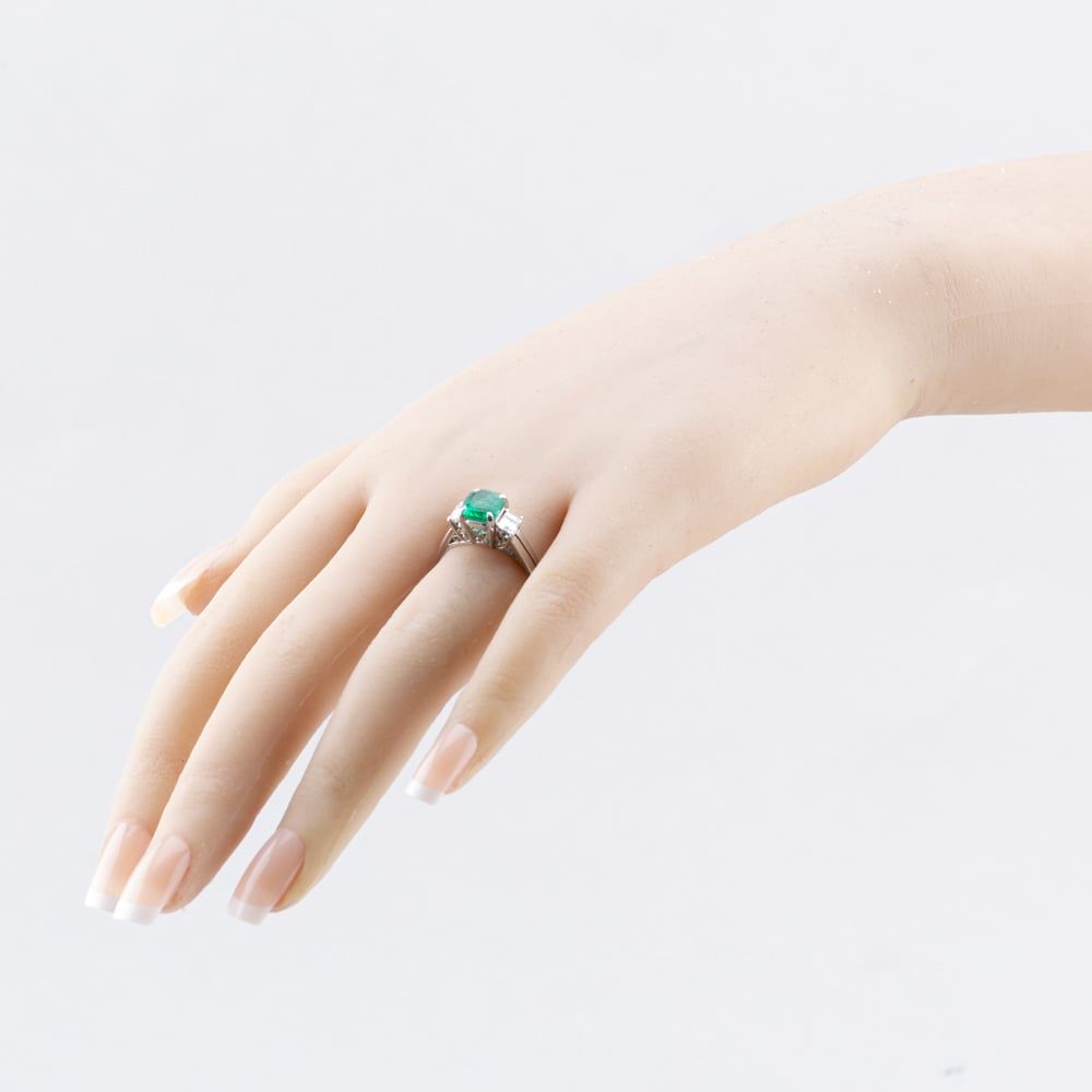Platinum 1.36ct Emerald & 0.50ct Emerald Cut Diamond three Stone Ring