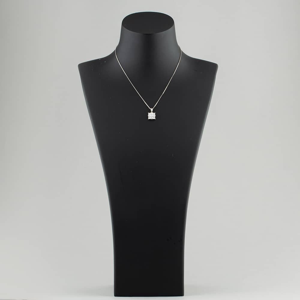 Platinum 1.50ct Princess Cut Diamond Square Cluster Pendant & 16 Inch Box Chain