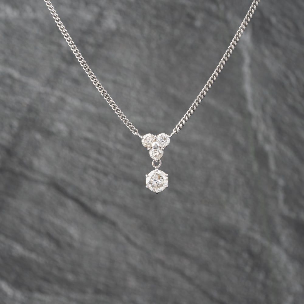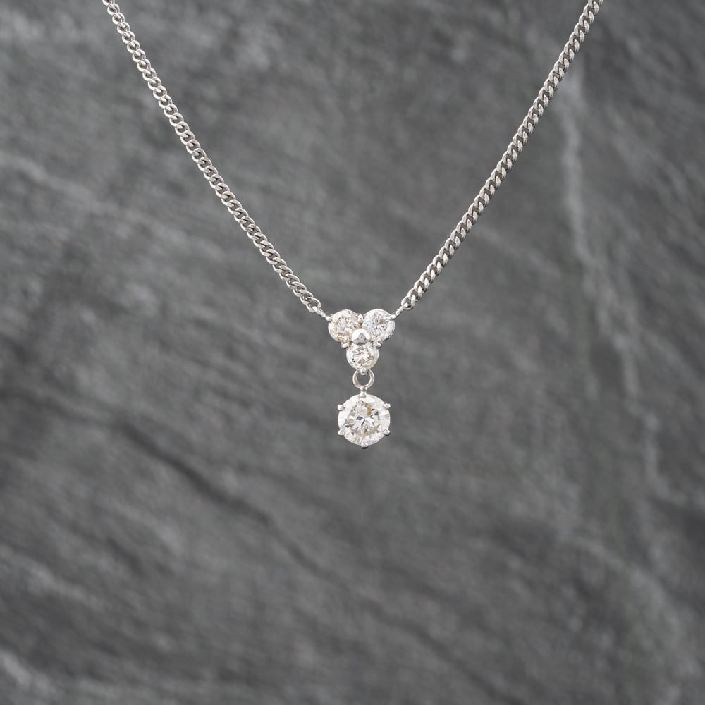 Platinum 1.51ct Brilliant Cut Diamond Four Stone Dropper Pendant & 16 Inch Curb Chain