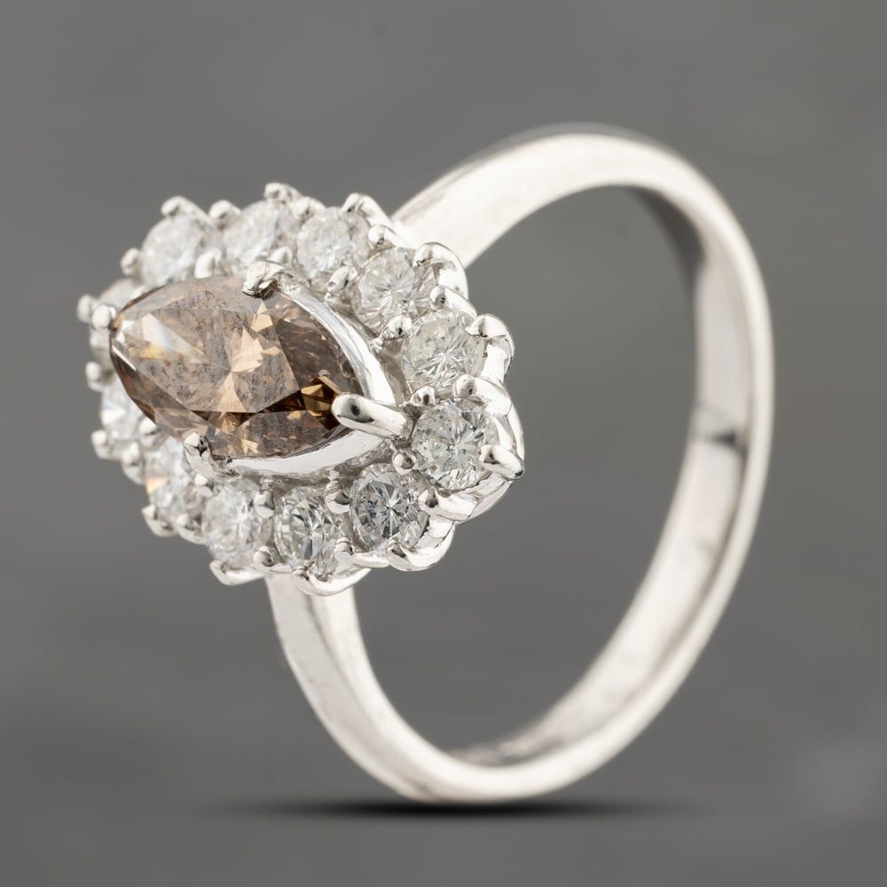 Platinum 1.64ct Diamond Marquise Cognac Cluster Ring