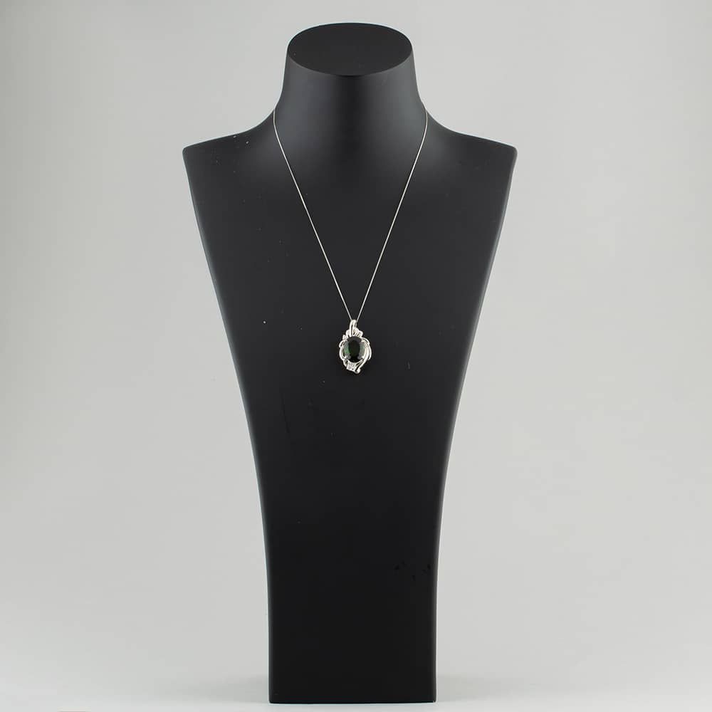 Platinum 10.86ct Green Tourmaline & 0.17ct Brilliant Cut Diamond Large Oval Pendant & 18 Inch Curb Chain