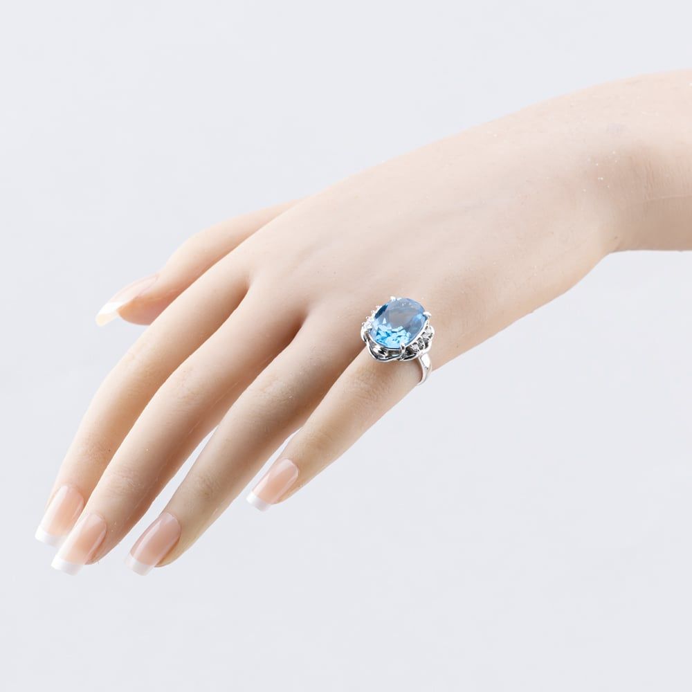 Platinum 12.43ct Blue Topaz & 0.21ct Brilliant Cut Diamond Oval Dress Ring