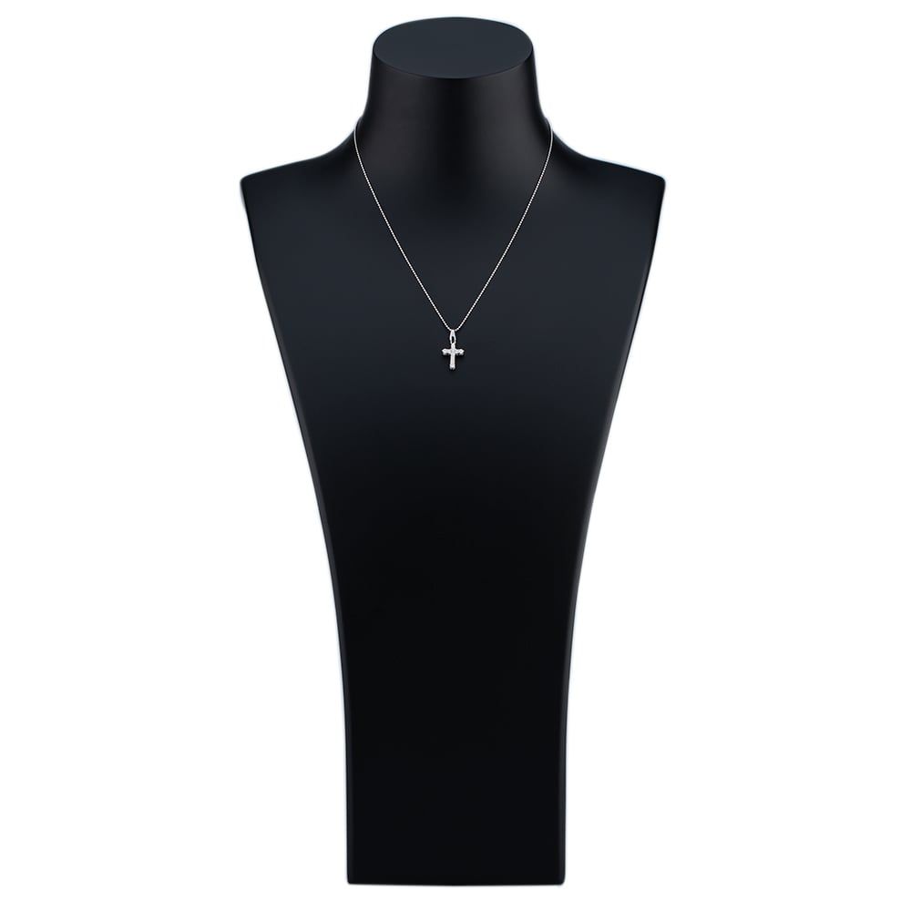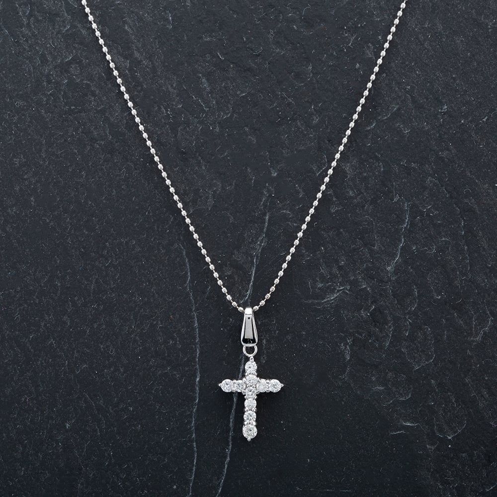 Platinum Brilliant Cut Diamond 10 Stone Set Cross Pendant On 16" Adjustable Ball Link Necklace Diamond Approximate Weight 0.30ct