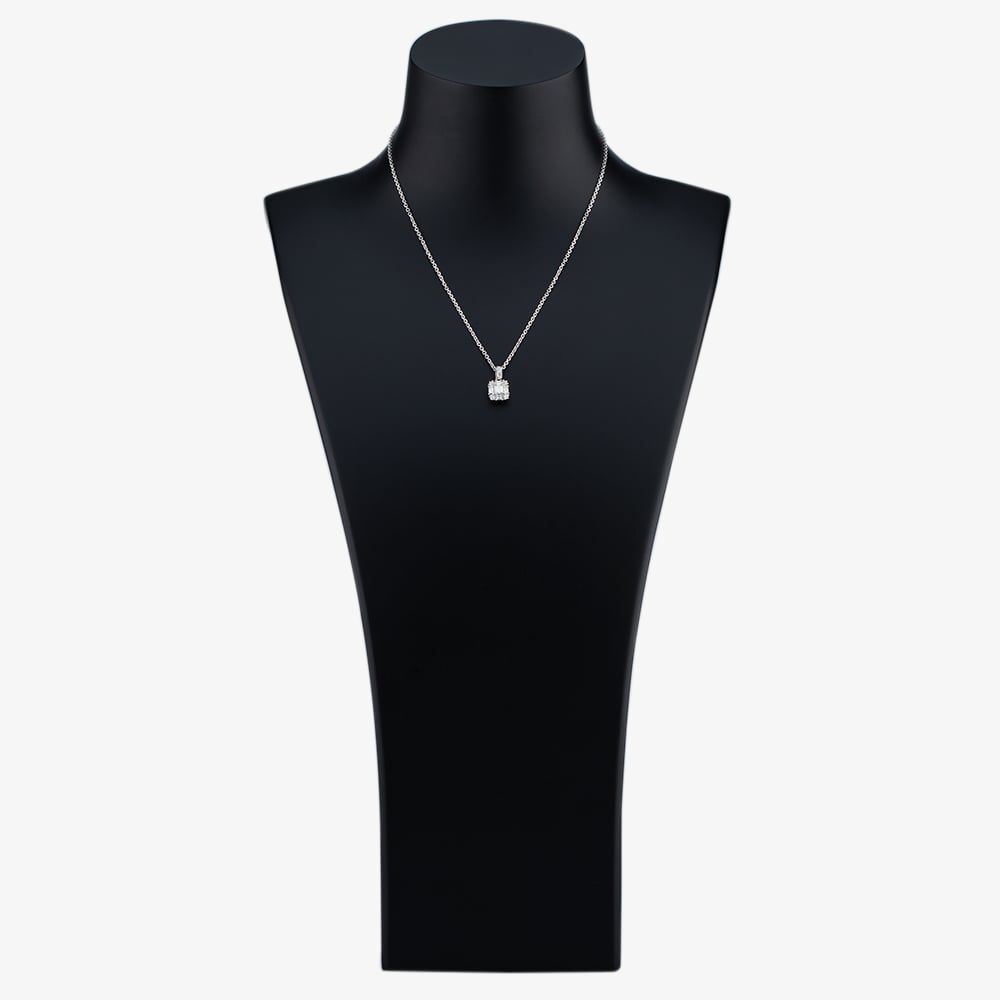 Platinum Baguette and Brilliant Cut Diamond Oblong Shape Pendant On 14ct White Gold Trace Link Necklace Approximate Total Diamond Weight 1.03ct