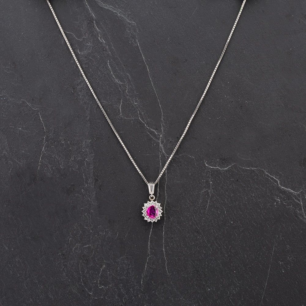 Platinum Oval Ruby with Surrounding Brilliant Cut Diamonds On 16 Inch Boxlink Necklace Ruby Weight 1.41ct Diamond Weight 0.45ct with Ruby Report