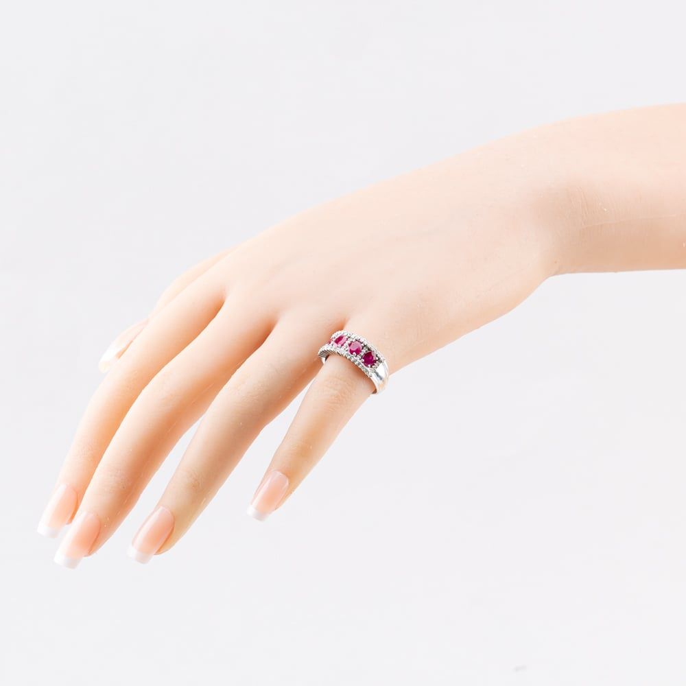 Platinum 2.03ct Ruby & 0.52ct Brilliant Cut Diamond three Row Ring