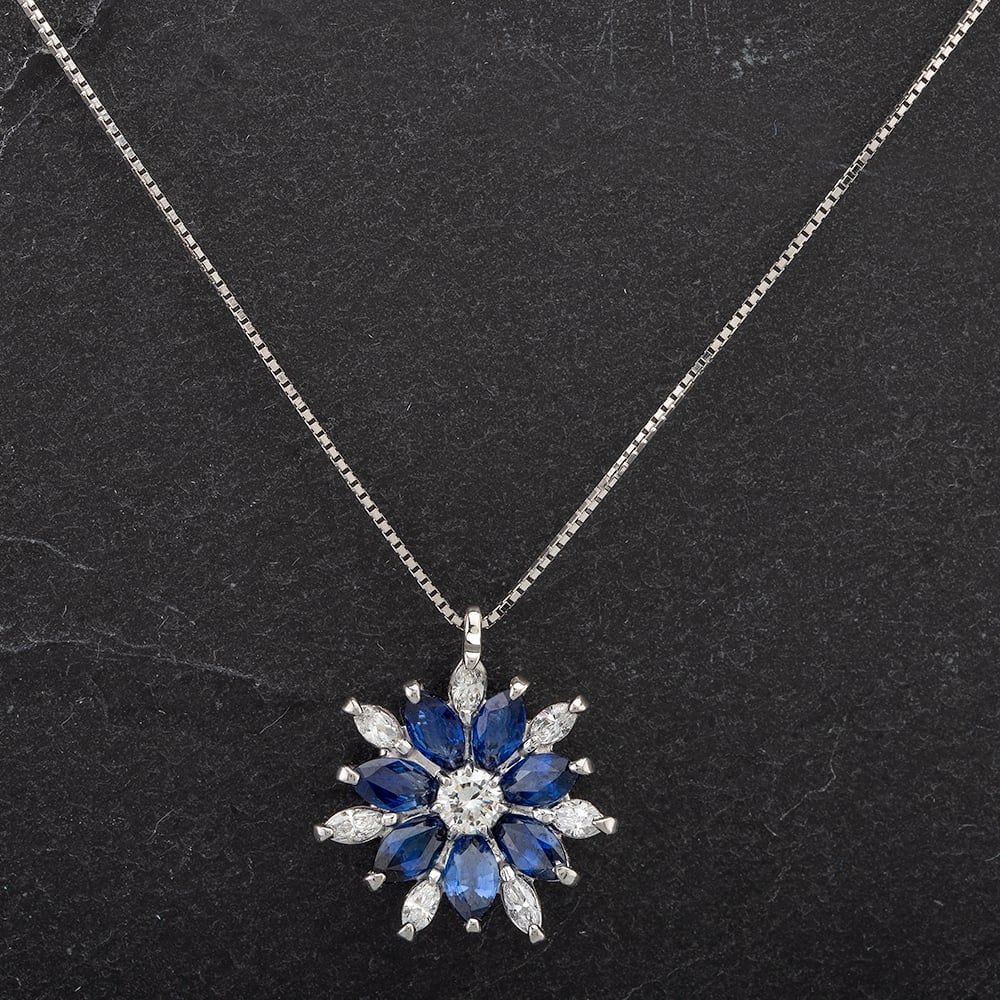 Platinum 2.10ct Sapphire and 0.59ct Diamond Flower Cluster Pendant