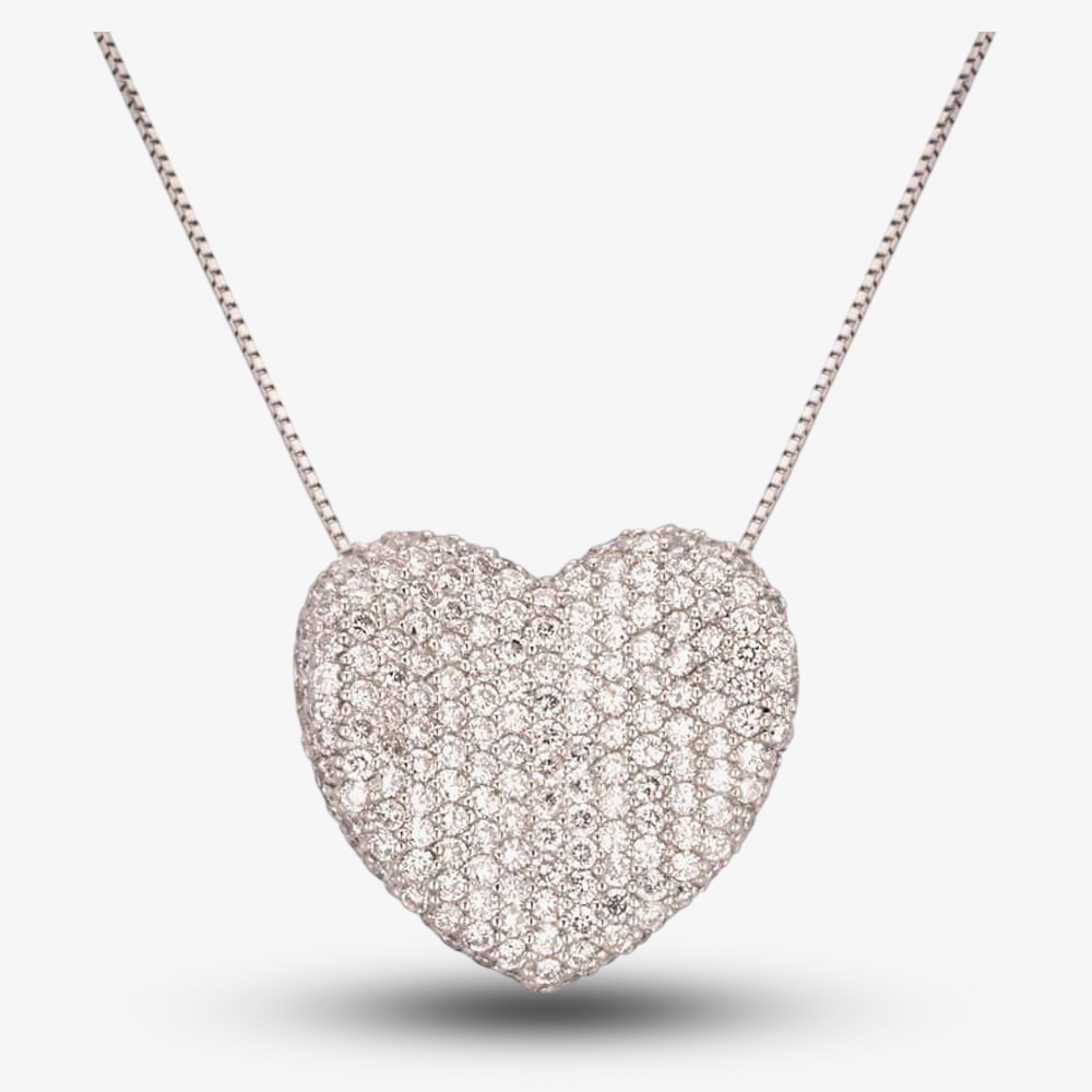 Platinum 18 Inch 2.20ct Pave Diamond Heart Necklace