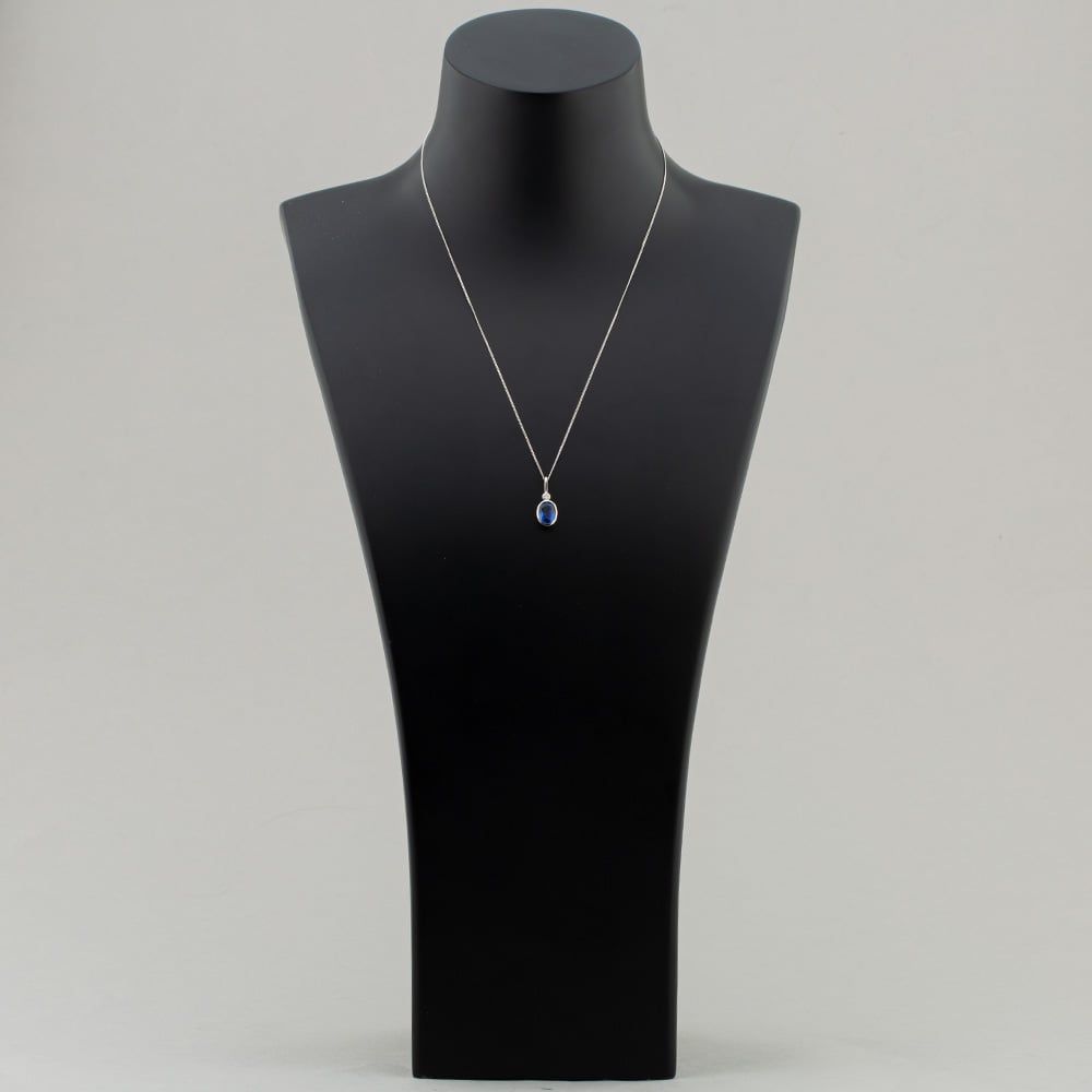 Platinum 2.31ct Sapphire & Brilliant Cut Diamond Rubover Oval Setting Pendant & 18 Inch Curb Chain