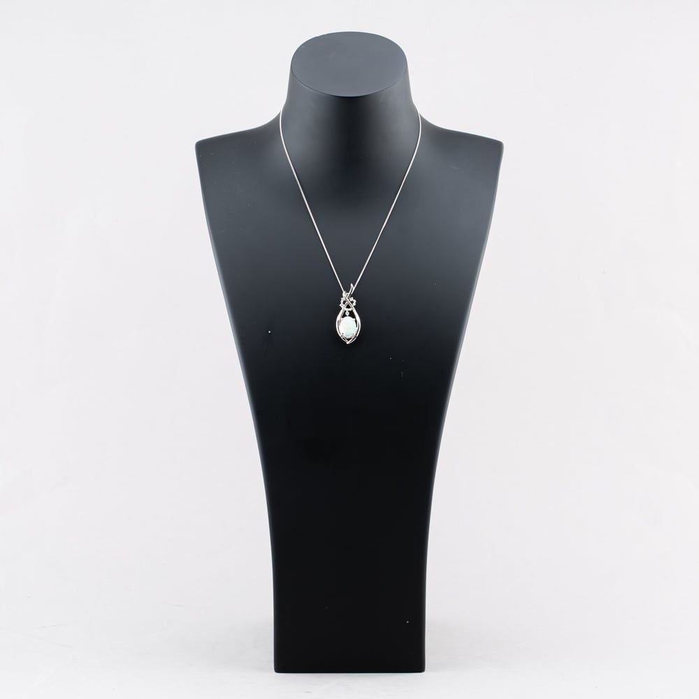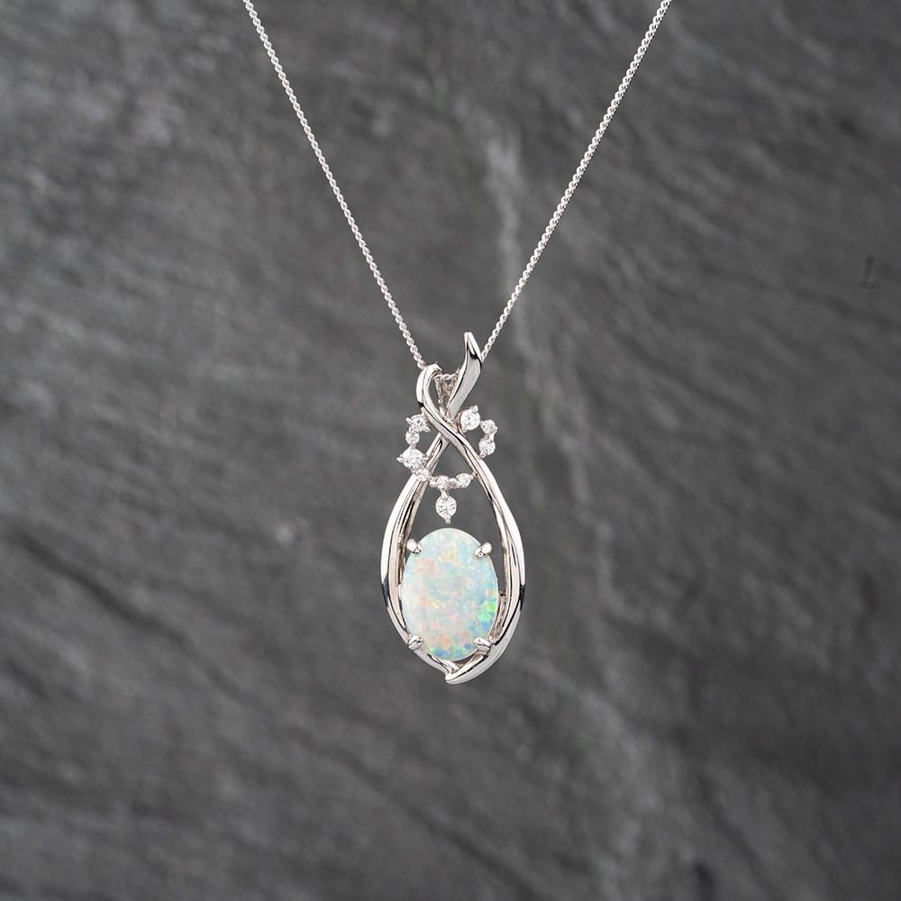 Platinum 2.35ct Opal & 0.21ct Brilliant Cut Diamond Fancy Pendant & 16 Inch Curb Chain