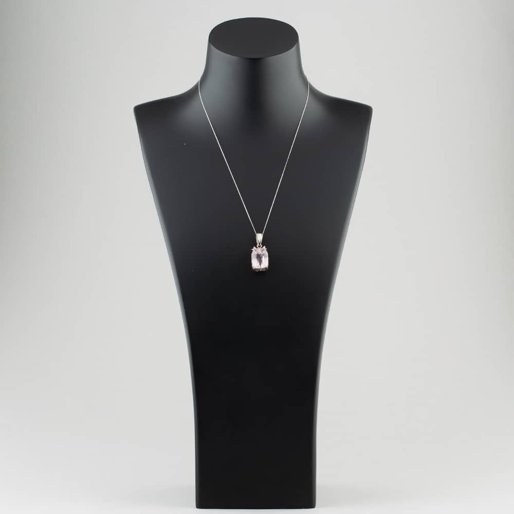 Platinum 22.10ct Kunzite & 0.12ct Brilliant Cut Diamond Large Cushion Pendant & 18 Inch Curb Chain