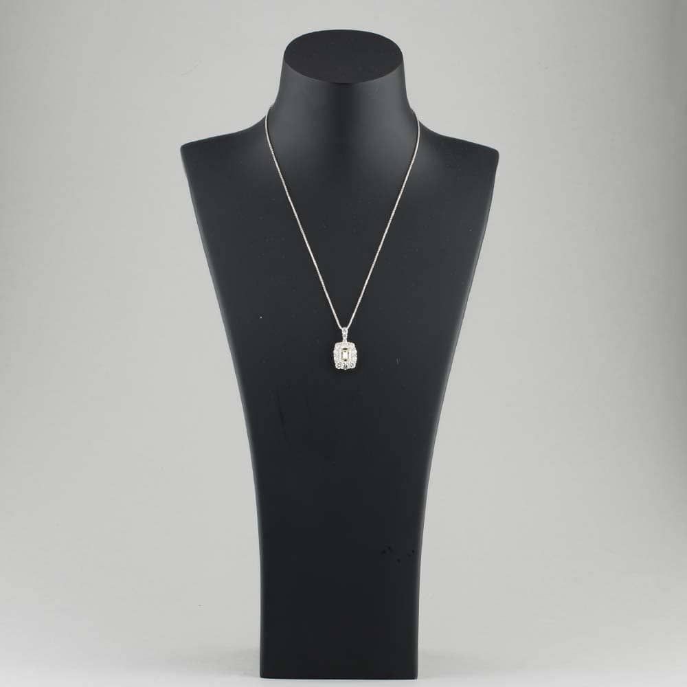 Platinum 3.03ct Emerald Cut Diamond Pendant & 18ct White Gold 19 Inch Box Chain