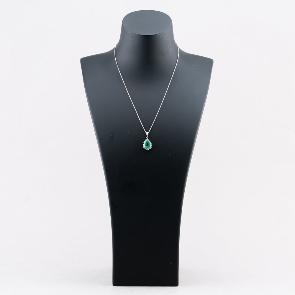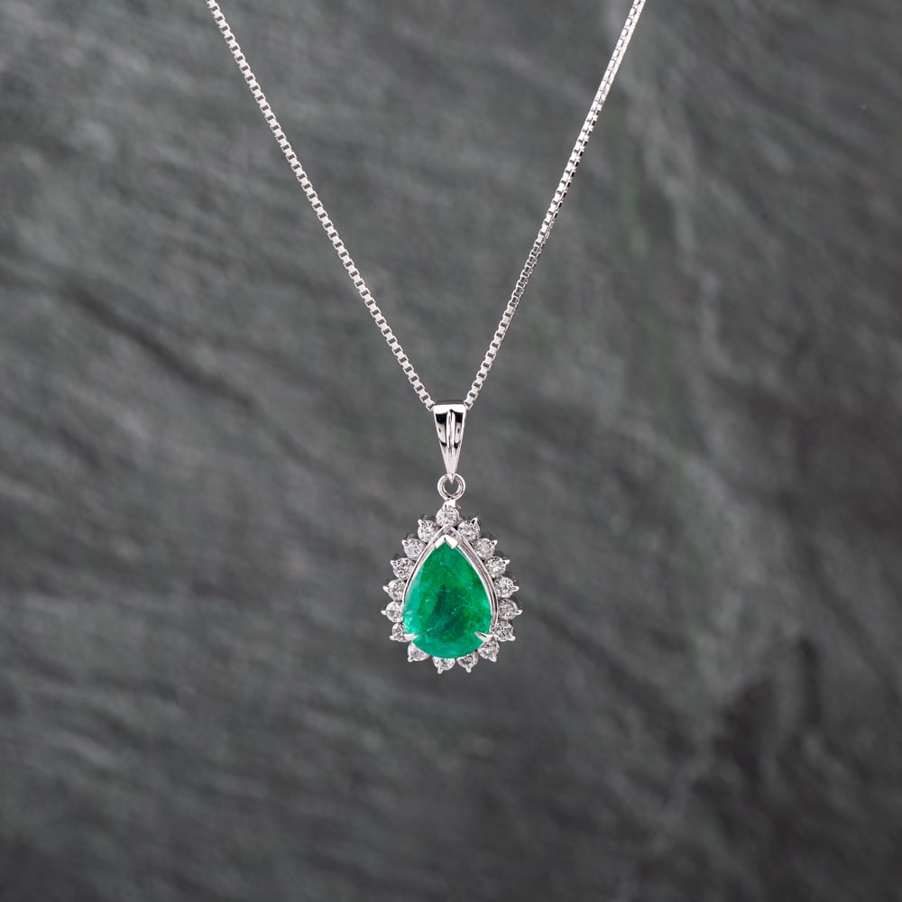 Platinum 3.08ct Emerald & 0.62ct Brilliant Cut Diamond Pear Shaped Pendant & 18 Inch Box Chain