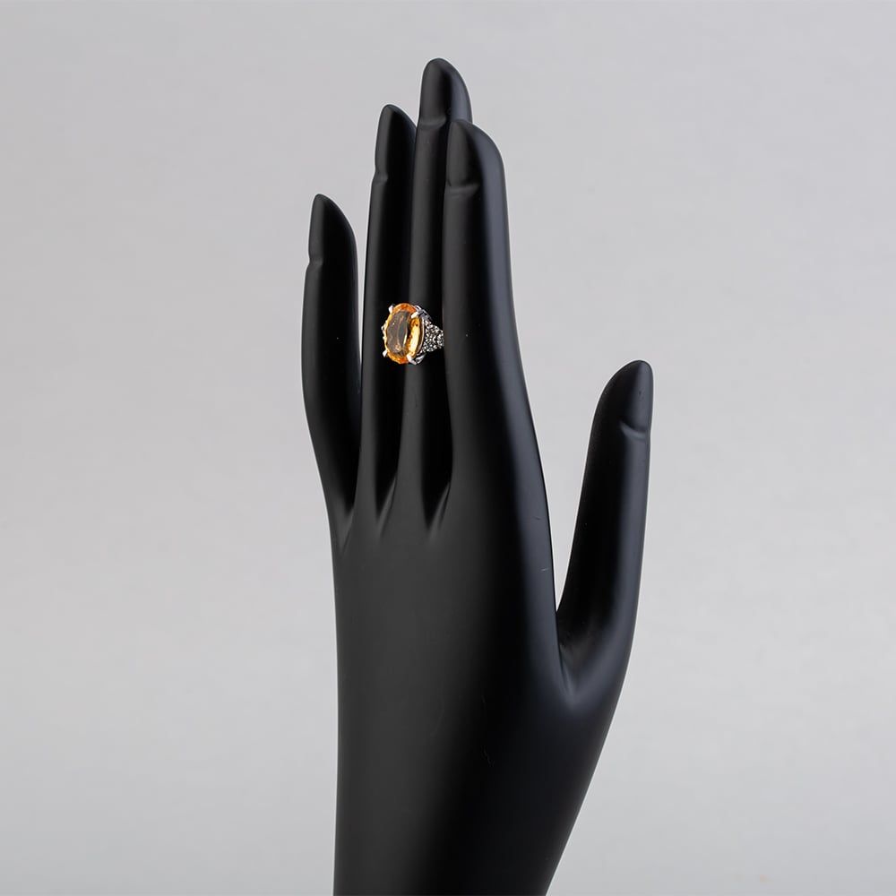 Platinum 3.92ct Golden Topaz & 0.38ct Brilliant Cut Diamond Seven Stone Ring