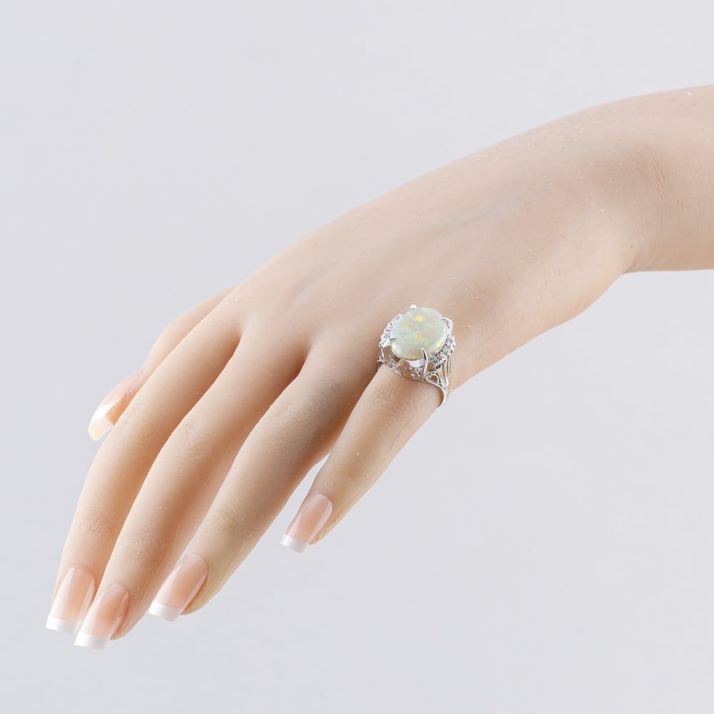 Platinum 5.15ct Opal & 0.23ct Diamond Oval Dress Ring