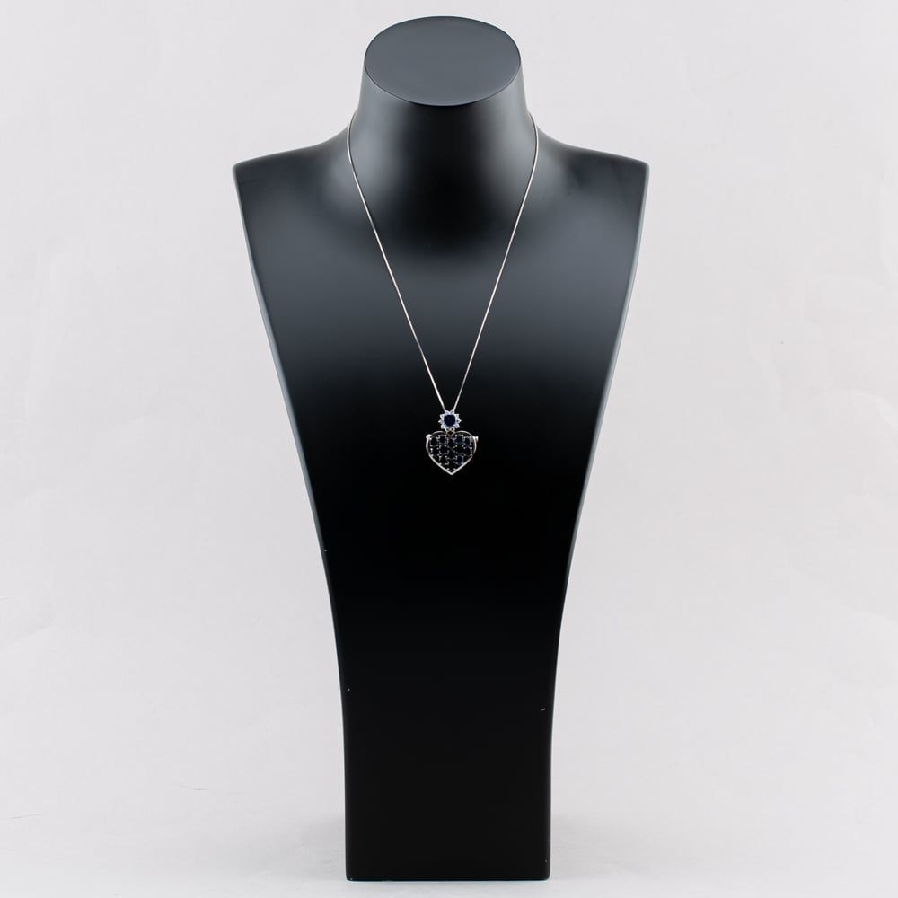 Platinum 5.35ct Sapphire & 0.46ct Diamond Heart Pendant & 16-18 Inch Box Chain