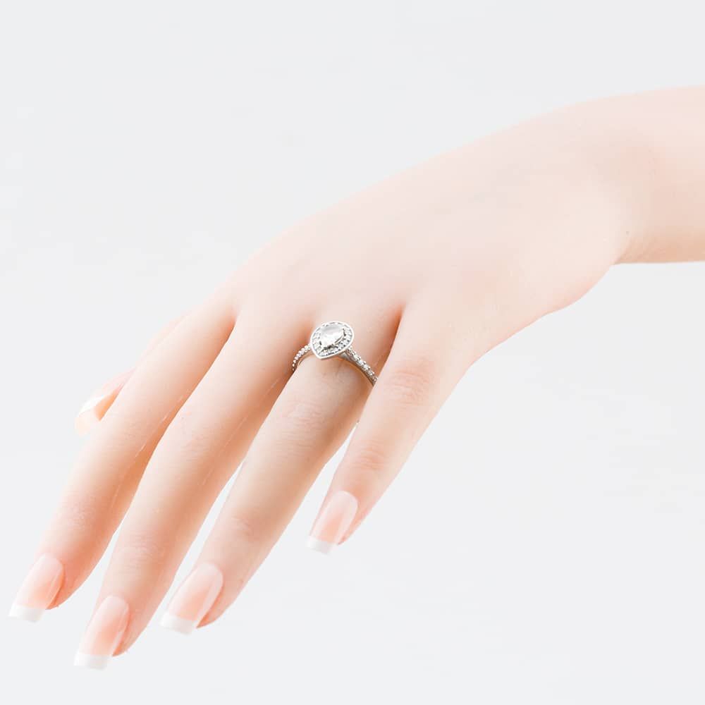 Second Hand Platinum Certificated 0.65ct Pear Cut White Sapphire & 0.38ct Brilliant Cut Diamond Halo Ring 4148948 Second Hand Platinum Certificated 0.65ct Pear Cut White Sapphire & 0.38ct Brilliant Cut Diamond Halo Ring 4148948