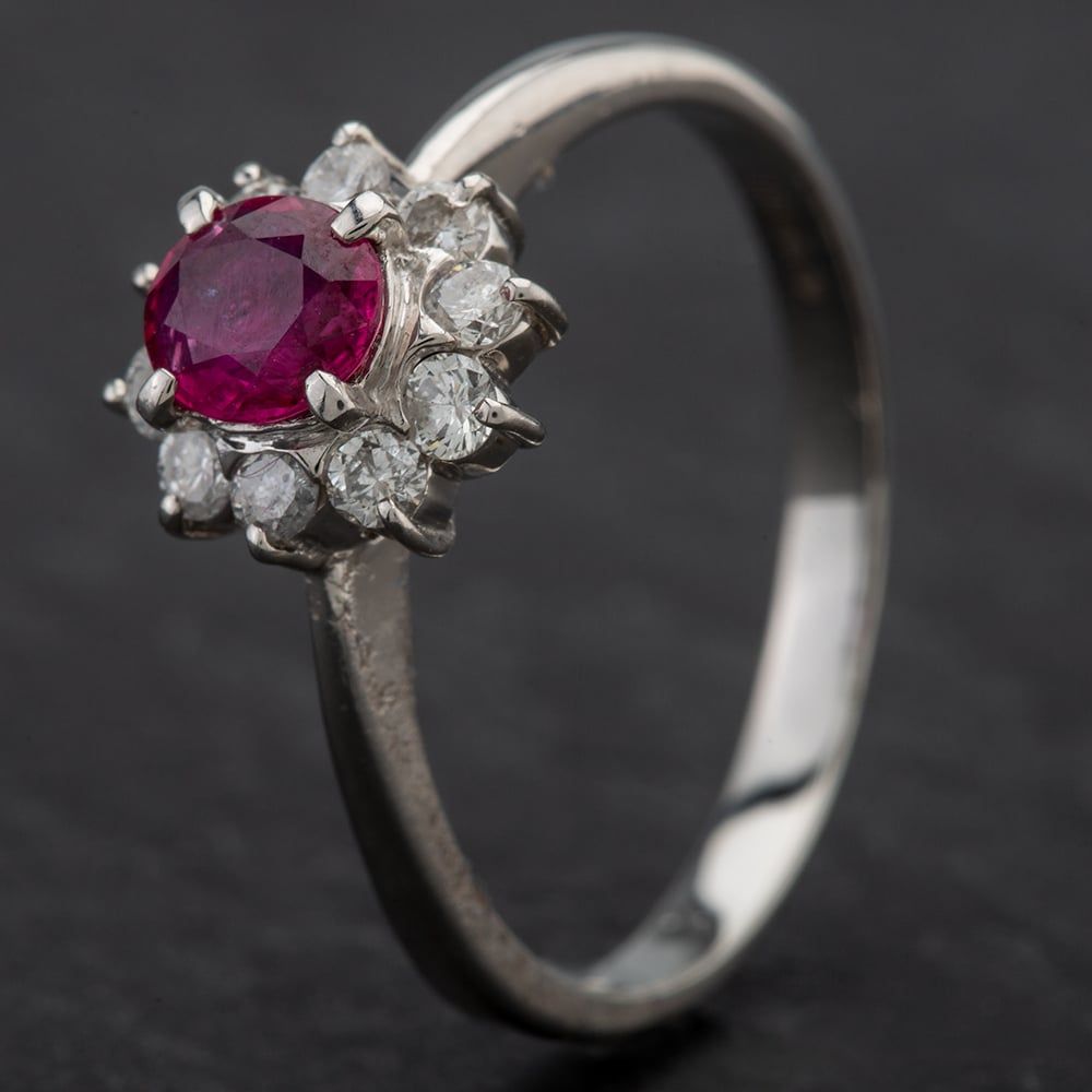 Second Hand Platinum Diamond Ruby Cluster Ring 4335143